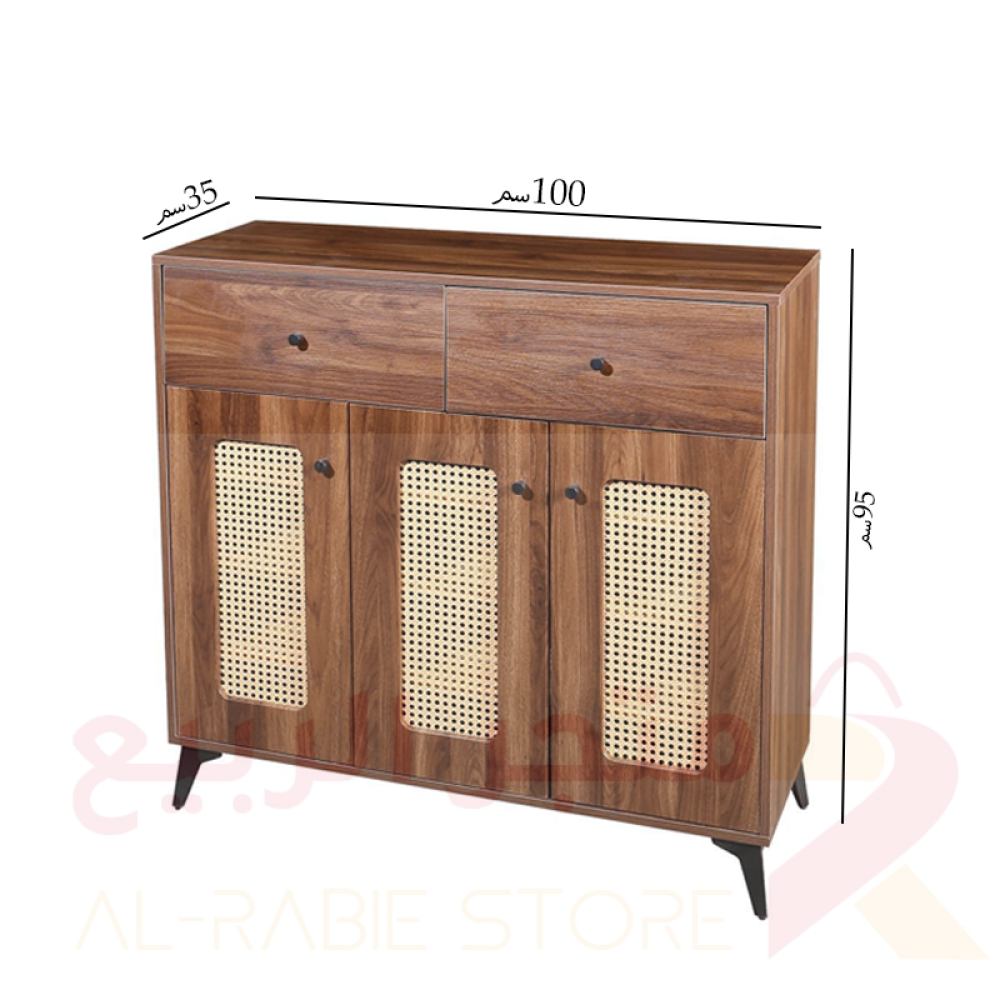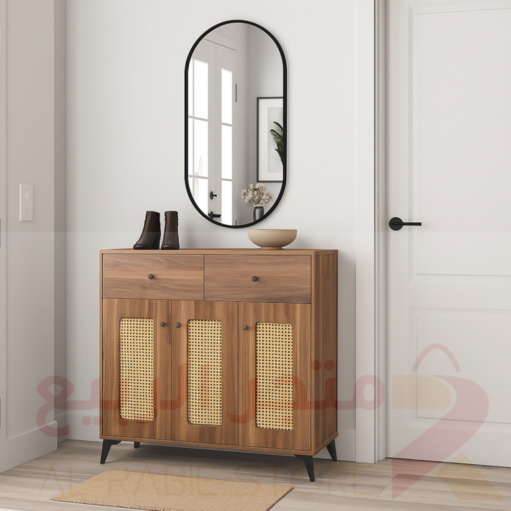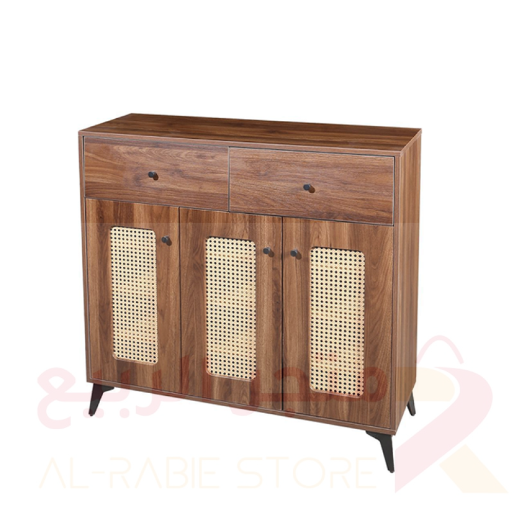 دولاب أحذية خشبي بتصميم عصري مع أبواب راتان و2درج.